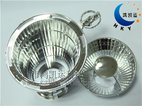 塑料反光杯模具制造,通常對(duì)模具鋼材光學(xué)要求比較嚴(yán)格,通常使用NAK80材料,其特點(diǎn)是硬度高而且光學(xué)性能好,耐腐蝕不易生銹。產(chǎn)品注塑加工后需要二次電鍍處理,一般選擇真空鍍。